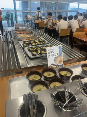 이번 식단에는 청정 해역 완도산 국내산 전복이 사용돼 직원들의 큰 호응을 얻었다.