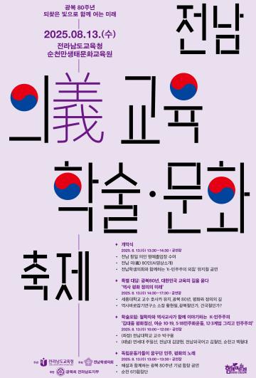 ![]() 광복80주년 기념 전남 의(義) 교육 학술문화축제 포스터 |