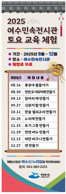 ![]() ‘2025 여수민속전시관 토요 교육 체험’ 운영표 |