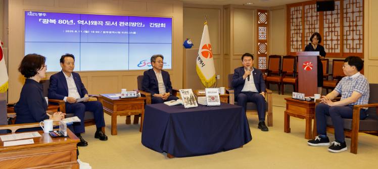 이날 간담회는 자치구와 학교현장 등에 비치된 역사왜곡 도서의 현황을 점검하고, 광주 지역 내 역사 왜곡 자료가 비치되지 않도록 공동 대응 방안을 논의하기 위한 자리였다.