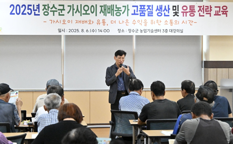 이번 교육은 장수군 대표 지역특화 작목인 가시오이의 품질 향상과 유통 기반 확충을 통한 농가 소득 증대 및 경쟁력 강화 방안을 제시하기 위해 진행됐으며 부산공판장 박진형 경매사와 원농종묘 황정근 본부장을 특별강사로 초청했다.