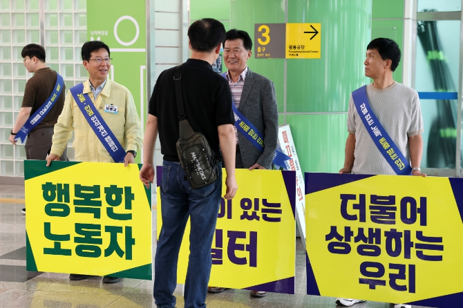 이날 평동역 일대에서 출근 시간을 활용해 시민 약 200명을 대상으로 노동자 대상 노동·인권 인식개선 내용이 담긴 홍보물을 전달했다.