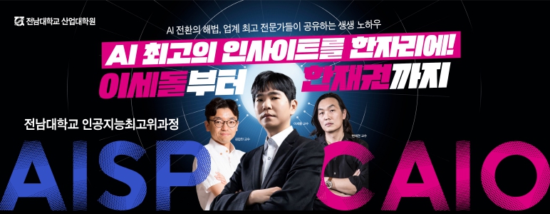 전남대학교 공과대학(학장 한종훈)은 12일, 산업대학원 최고산업전략과정(AISP)에 AI 기반 비즈니스 혁신을 선도할 ‘Chief AI Officer(CAIO) 과정’을 신설하고 한국인공지능협회와 공동 운영한다고 밝혔다. 본 과정은 오는 9월 개강하며, 현재 한국인공지능협회 홈페이지(caio.koraia.org)에서 선착순 모집 중이다.