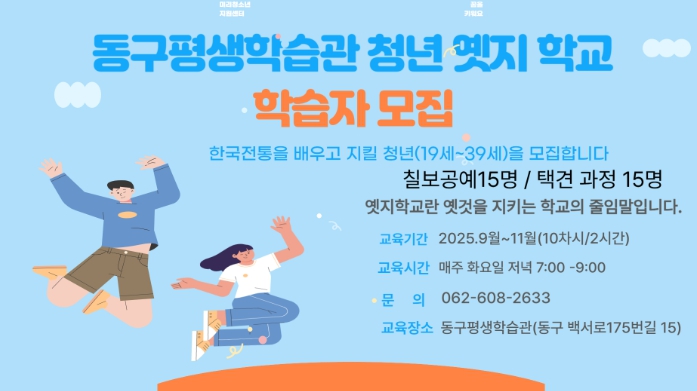 ![]() 동구평생학습관 ‘청년 옛지 학교’ 학습자 모집 |