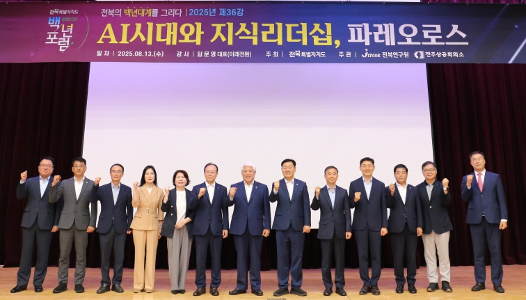 전북연구원(원장 이남호)은 이날 오전 8시 전북특별자치도청 대회의실에서 ‘AI 시대와 지식리더십, 파레오로스’를 주제로 ‘전북 백년포럼’ 제36강을 개최했다.