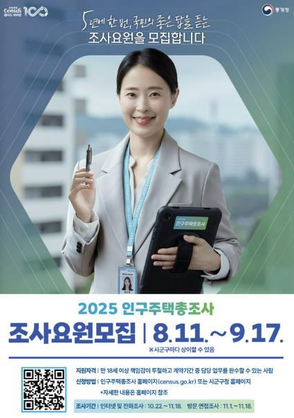 지원자는 만 18세 이상으로 조사 기간에 성실한 업무 수행이 가능하고 태블릿 등 스마트기기 활용이 가능해야 하며, 대규모 통계조사 경험자 등은 우대한다.