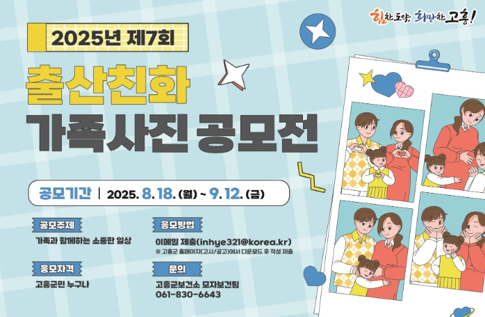 ![]() 고흥군, ‘제7회 출산 친화 가족사진 공모전’ 개최 |