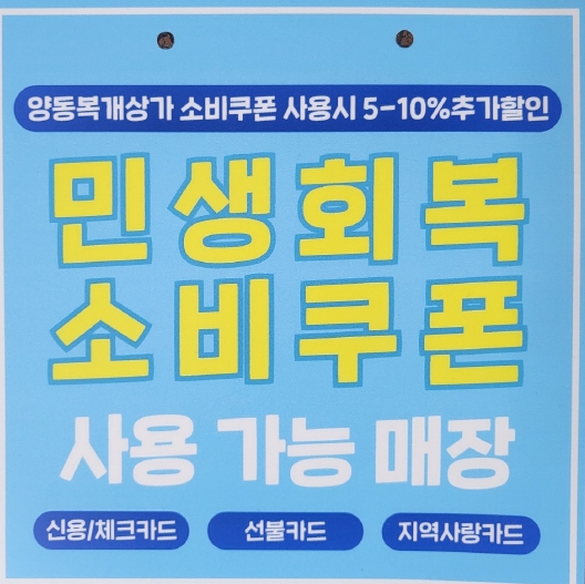 ![]() 대인시장‧양동복개상가 등 6곳서 소비쿠폰 최대 10% 할인이미지_민생회복 소비쿠폰 할인 |