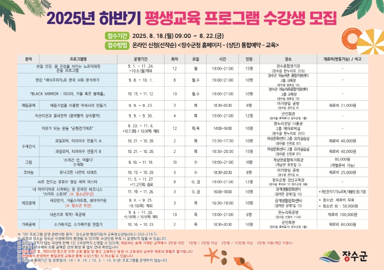 ![]() 2025년 하반기 평생교육 프로그램 홍보 포스터 |
