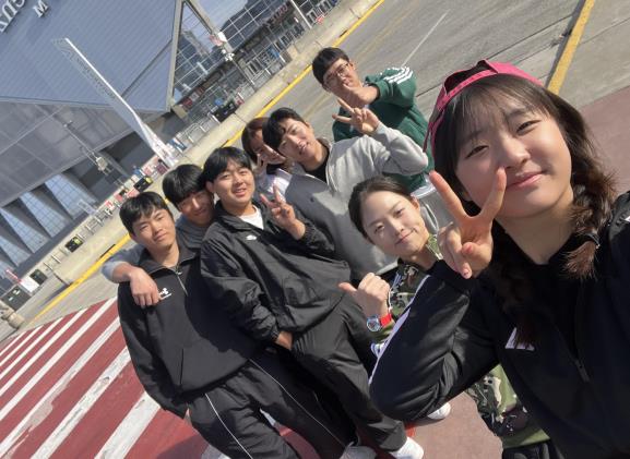 ![]() 지난 2월 트로이대 국제교류 프로그램에 참가한 김채은 학생(오른쪽 맨 앞)과 함평골프고 학생들 |