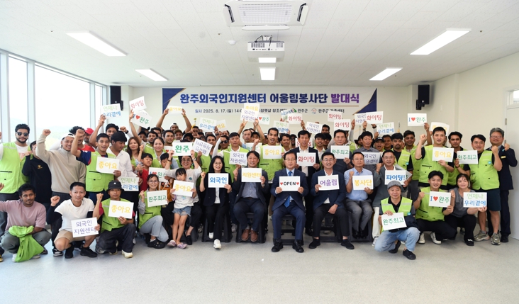 이날 행사에는 유희태 완주군수, 유의식 완주군의회 의장, 완주군가족센터장, 더불어사는좋은이웃 대표, 외국인근로자 50여 명이 참석해 봉사단의 출범을 축하했다.