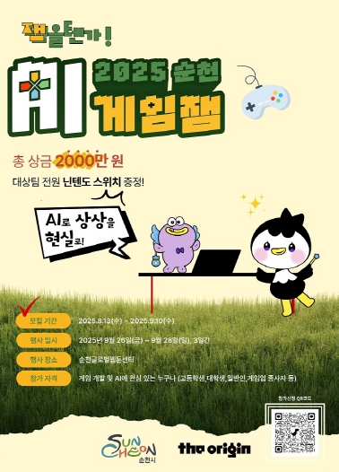 시는 AI 기술과 결합한 게임 개발이라는 차별화를 내세워 ‘AI로 상상을 현실로’라는 슬로건 아래 총상금 2천만원을 걸고 전국 최대 규모의 게임잼을 운영한다. 상금은 ㈜디오리진에서 전액 지원한다.