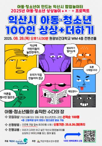 김윤근 익산시청소년수련관장은 "이번 프로젝트를 통해 아이들이 아이디어를 마음껏 표현하는 기회를 제공하고자 한다"며 "이를 통해 아동과 청소년의 참여권이 실질적으로 강화되고 아동친화도시 익산 조성의 밑거름이 되길 기대한다"고 말했다.