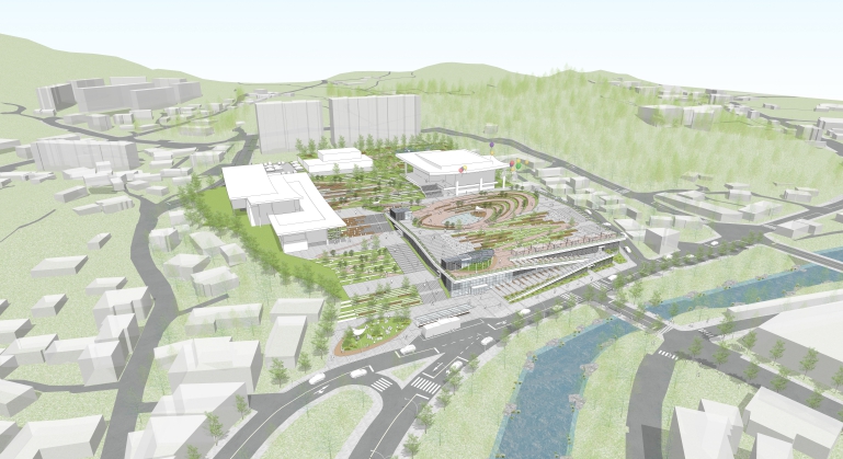 ‘학천지구 복합문화광장’은 학천지구(1,2,3블럭)에 함께 조성 예정인 지혜의 숲도서관, 진안문화예술회관, 온가족다올마루 등 다양한 문화시설과 어우러지는 공간으로 연면적 5,227㎡ 규모로 조성된다.