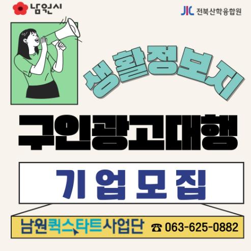 구인 광고 지원을 희망하는 기업은 남원퀵스타트사업단 전화로 신청할 수 있으며, 기업별 맞춤형 구인광고 문안 제작 및 광고 게재까지 전 과정에 대해 지원하고 있다.