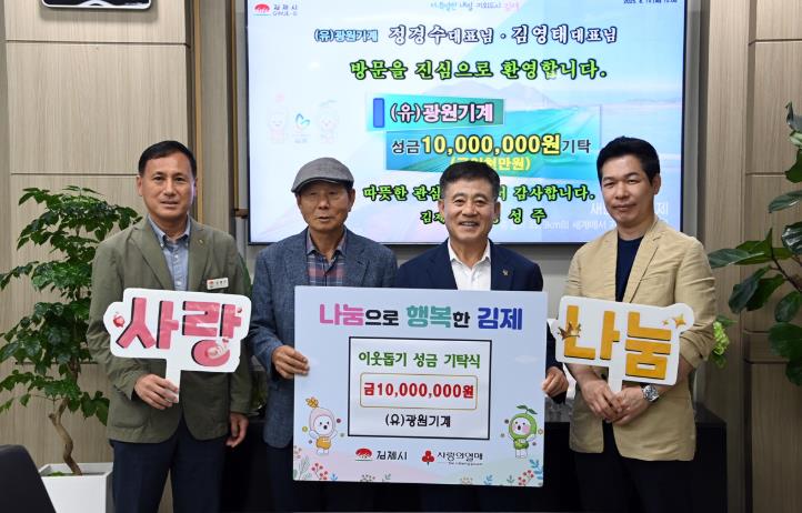 ![]() (유)광원기계, 김제시에 성금 1천만원 기탁 |