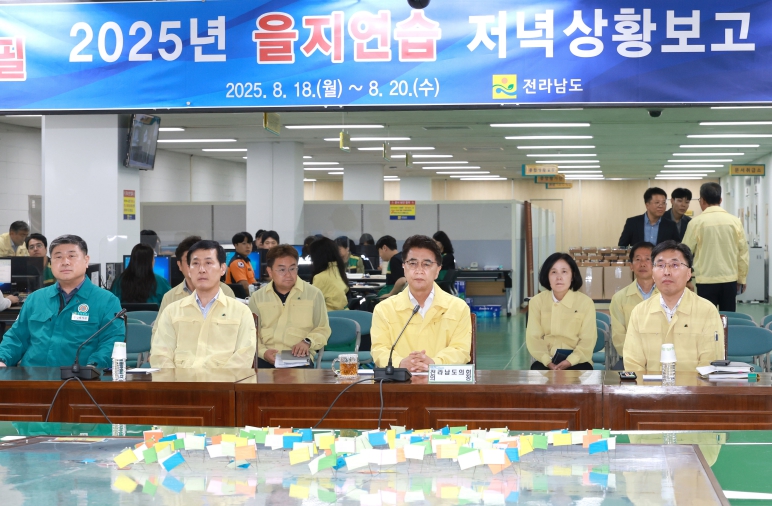 김태균 의장은 이날 전남도청 을지연습 종합상황실에서 전시 종합사항에 대해 보고를 받고, “국가 비상 상황 시에 관련 기관 간 소통과 협력으로 비상 대비 역량을 강화할 수 있도록 최선을 다해 줄 것”을 당부했다.