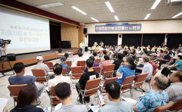 북구는 오늘 침수 피해 주민 150여 명이 참석한 가운데 열린 ‘침수 피해지원 및 중장기 예방대책 주민보고회’에서 재난지원금 확대 지급을 안내하고 신속한 피해복구를 약속했다.
