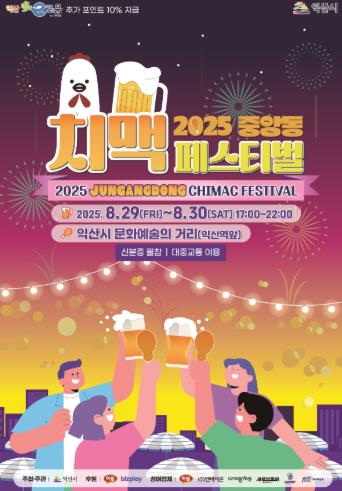 익산시는 '2025 중앙동 치맥 페스티벌'이 오는 29~30일 중앙동 문화예술의 거리에서 열린다고 20일 밝혔다.