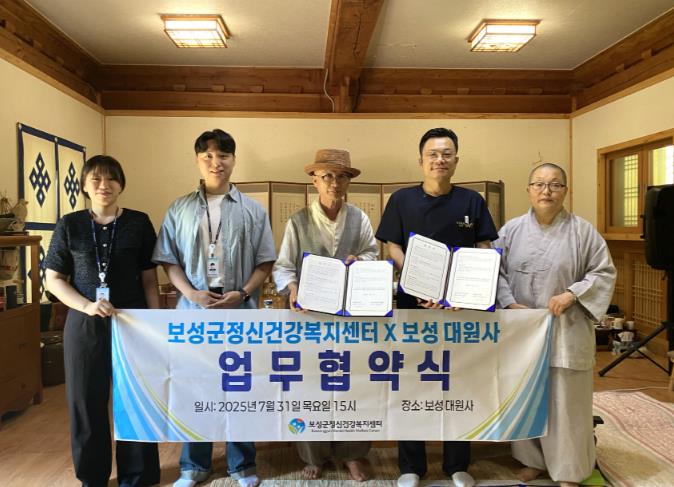 보성군정신건강복지센터는 지난 7월 31일 지역 문화유산인 보성 대원사와 업무협약(MOU)을 체결하며 프로그램의 전문성과 지역 특색을 강화했다.