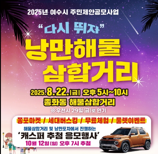 ![]() 여수시, ‘다시뛰자 낭만 해물삼합거리’ 8월 22일 개최 |