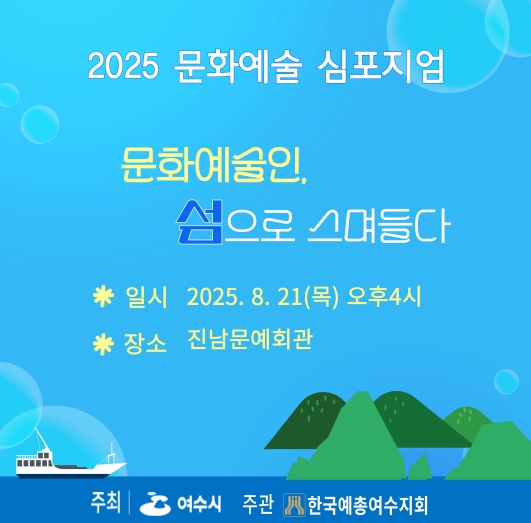 ![]() 여수시, 8월 21일 ‘2025 문화예술 심포지엄’ 개최 |