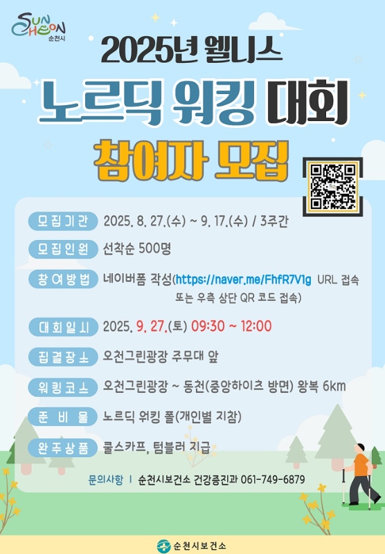 ![]() 순천시, '2025년 웰니스 노르딕 워킹 대회' 참여자 모집 |