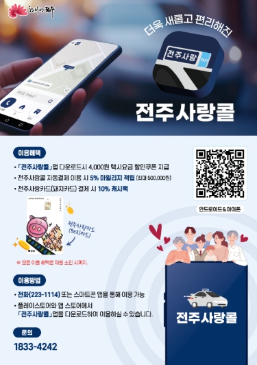 시는 앞으로도 더 많은 시민이 전주사랑콜을 편리하게 이용할 수 있도록 다양한 채널을 통한 홍보를 지속해나갈 계획이다.