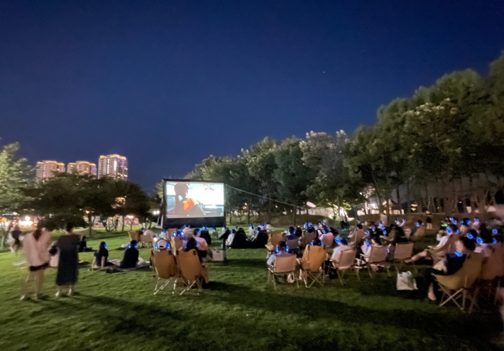 참여자들은 돗자리, 에어 쇼파, 캠핑 의자 등에서 자유롭게 영화를 관람하며 신규 프로그램에 대한 높은 만족도를 보였다.