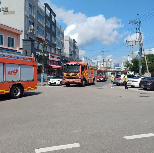 이날 훈련에서는 실제 상황을 가정해 소방차가 교통 흐름 속에서 신속히 이동하는 절차를 점검했다.