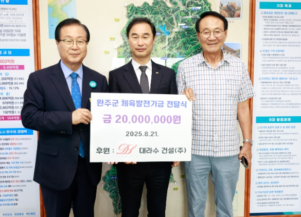 이번에 기부된 기금은 오는 9월 20일 열리는 완주군수배 걷기대회에 활용돼 군민 건강 증진과 생활체육 활성화에 쓰일 예정이다.
