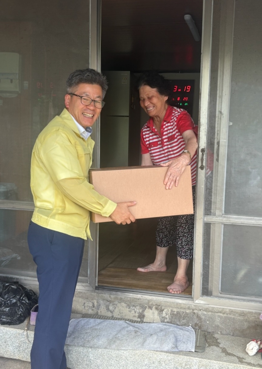 정재택 아산면장은 직접 가정을 방문하여 물품을 전달하며 어르신들의 안부를 확인하고 생활의 어려움도 함께 청취했다.
