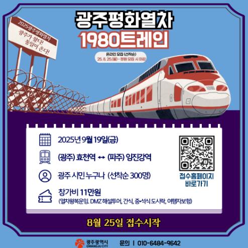 이번 열차에는 총 300명의 시민이 탑승할 예정이며, 참가신청은 25일부터 광주광역시 누리집에서 선착순으로 접수받는다.