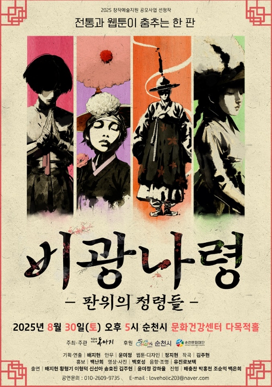 순천문화재단 관계자는 “이번 ‘비광나령-판위의 정령들’ 공연이 전통과 현대가 조화롭게 어우러진 뜻깊은 무대가 될 것”이라며, “시민 여러분의 많은 관심과 관람을 부탁드린다”고 말했다.