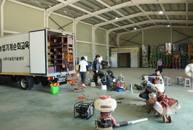 ![]() 나주시가 집중호우로 피해 본 농가 회복 지원을 위해 농기계 임대료를 감면한다. 사진은 지난 7월 30일 침수 농기계 순회 수리 지원 당시 현장 모습. |