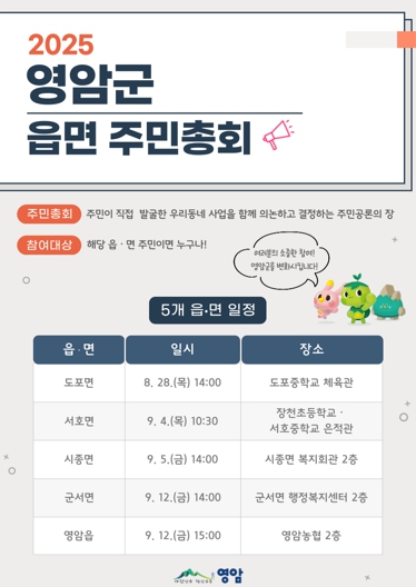 각 읍·면 주민총회는 ‘2025년도 주민자치회 활동 보고’ ‘2026년 추진 마을사업 주민투표’ 등이 진행된다.