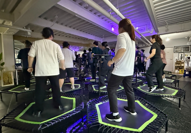 전문 강사 지도 아래 트램폴린을 활용한 점핑운동으로 참가자들은 즐겁게 땀을 흘리며 체력을 끌어올렸다.