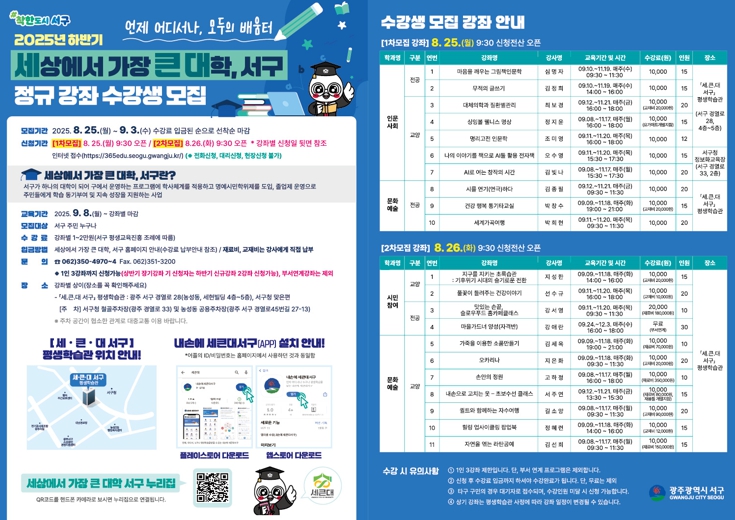 ![]() 광주광역시 서구, 세큰대 하반기 정규강좌 개강 |