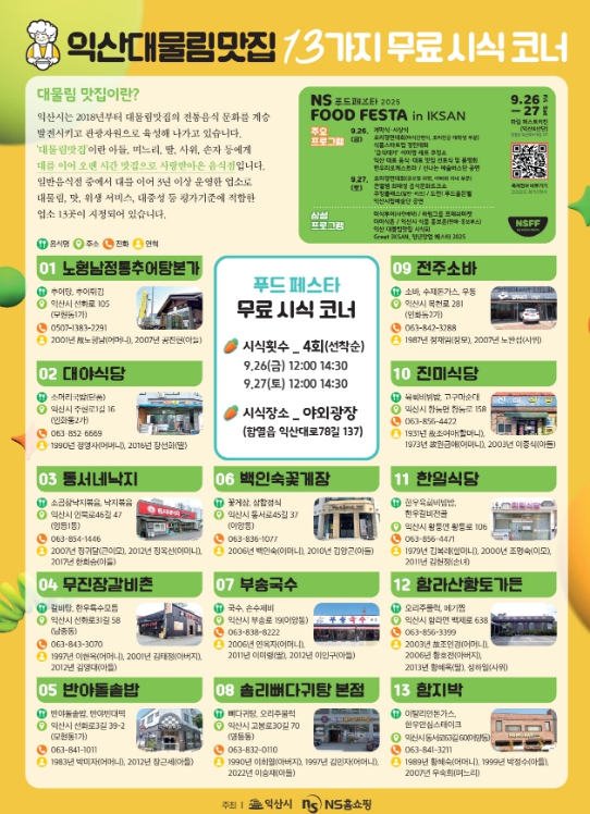 또한 오는 9월 26일부터 27일까지 함열읍 제4일반산업단지에서 열리는 'NS푸드페스타 2025 in 익산' 현장에서 시식회를 마련, 전국 각지 방문객들에게 익산의 깊은 맛과 정성을 선보일 예정이다.