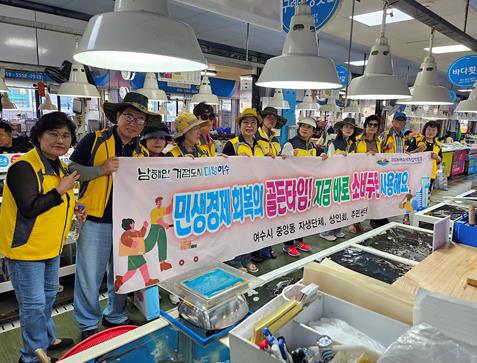 ![]() 지난 21일 여수수산시장, 건어물상가 일대에서 자생단체, 상인회와 함께 ‘민생회복 소비쿠폰 조기 사용’ 캠페인을 실시했다. |