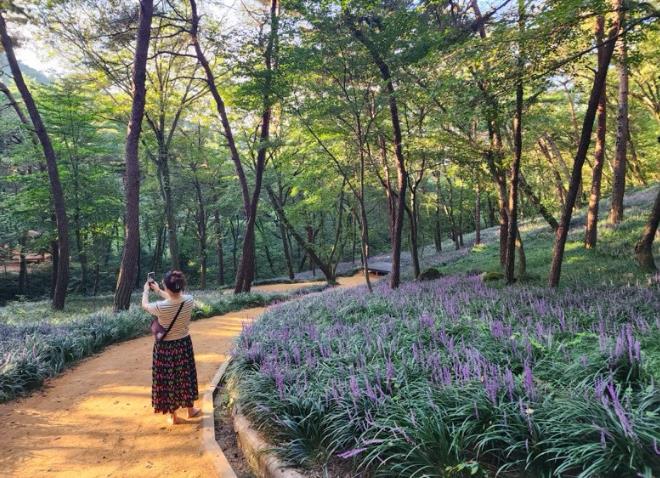 발바닥에 전해지는 황토의 촉감, 숲속의 시원한 공기, 그리고 길의 시작과 끝을 장식한 보랏빛 맥문동 군락지는 마치 정찬 코스의 전채와 디저트처럼 이용객에게 특별한 기억을 남긴다.