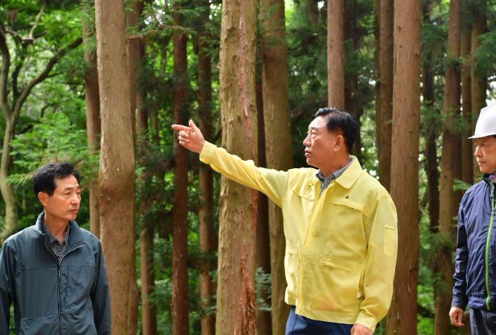 ![]() 김한종 장성군수가 축령산 편백숲 산림자원을 살펴보고 있다 |