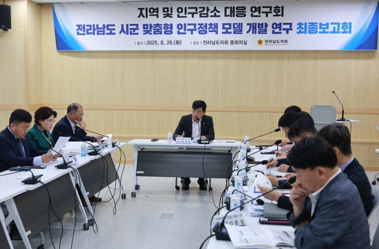 이현창 대표의원은 "이번 보고회에서 전남 지역 인구 문제 해결을 위한 실효성 있는 정책 방안들을 확인했다"며 "연구 성과물이 형식적 결과물에 그치지 않고 조례 개정과 예산 편성, 현장 적용으로 이어져 도민들이 직접 변화를 경험할 수 있도록 의회가 앞장서 추진하겠다"고 약속했다.