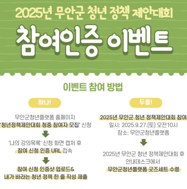 ![]() 2025년 제2회 무안군 청년 정책 제안대회 청중참여 이벤트 |