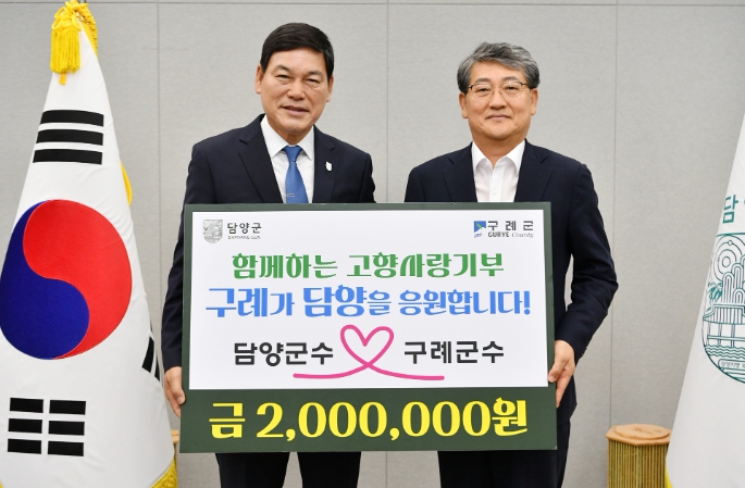 이번 상호 기부는 지난 4월 정철원 담양군수가 구례군에 고향사랑기부금 200만원을 기탁한 데 이어, 8월 김순호 구례군수가 담양군에 200만원을 기탁하여 이루어졌다.