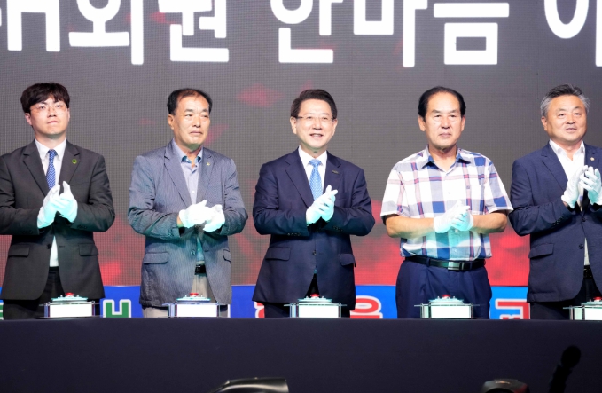 ![]() 김영록 전라남도지사가 27일 진도 실내체육관에서 열린 ‘2025 전남 청년4-H회원 한마음 야영교육 봉화식’에 참석해 주요내빈들과 퍼포먼스를 하고 있다. |