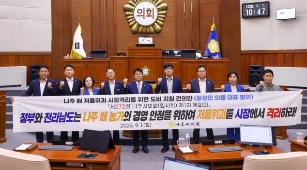 ![]() 나주시의회, ‘나주 배 저품위과 시장격리를 위한 도비 지원 건의안’ 채택 |