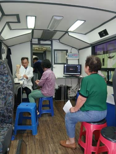 ![]() 이동검진 버스 내 전문의 상담 모습 |