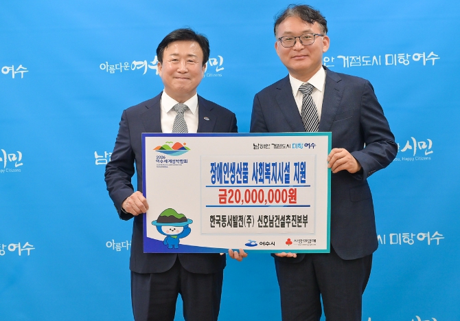 정기명 여수시장은 “지역사회와 이웃을 위한 한국동서발전의 따뜻한 나눔에 깊이 감사드린다”며 “이번 후원이 장애인의 일자리 확대와 복지시설 지원에 큰 힘이 될 것”이라고 말했다.