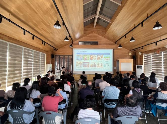 ![]() 2일 저전나눔터에서 열린 「순천시 치유관광 미래전략 릴레이 특강」에 시민, 공직자, 지역 소상공인들이 참석해 강의를 듣고 있다 |